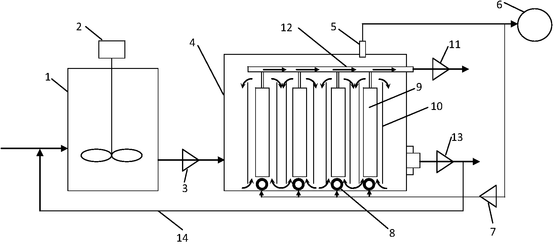 7 氣體循環泵 8 曝氣管 9 膜