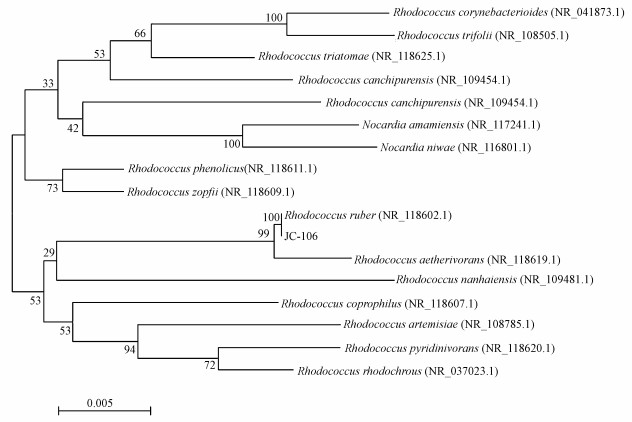 圖 1菌株JC-106的系統(tǒng)發(fā)育樹