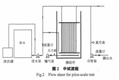 直鏈二元酸結構式為 HOOC(CH2)nCOOH(n為大于 7 的整數),是工程塑料尼龍的主要原料,還可用于合成香料的麝香酮,彩色顯象管與偏轉線圈粘合用膠,制成電解電容器、制備高級香料中間體、高檔潤滑油、高檔防銹劑、高級粉末涂料、熱熔膠、合成纖維以及其它聚合物等。據有關專家估計,到2010 年,我國對長鏈二元酸的需求量將達到 4~5萬噸。無論在直鏈二元酸傳統生產工藝及新的生物發酵生產技術都將產生大量酸性廢水,成分復雜,存在大量難降解及有毒有害物質,不僅造成其處理工藝復雜及穩定運行的困難,且對于擴產改造廢水處理設施帶來很大問題。為此,作者到山東某二元酸生產企業,進行了 MBR 工藝中試實驗。