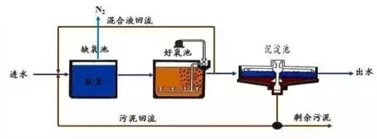 A/O脫氮除磷系統(tǒng),即缺氧、好氧脫氮除磷系統(tǒng)。工藝流程是讓廢水依次經(jīng)歷缺氧、好氧兩個階段,流程相對來講還會比較簡單的,運(yùn)行管理也不復(fù)雜。