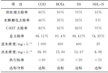 通過以上分析,最終確定選用混凝沉淀—水解酸化—CAST工藝的組合工藝技術作為該工業園區污水處理廠處理工藝。該組合工藝是一種有效的、合理的優化工藝,運用此組合工藝處理后,污水污染物排放濃度可達到GB8978-1996《污水綜合排放標準》一級標準。擬建項目污水治理分級去除效果見表2。