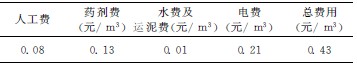 處理每噸廢水的各項直接運行費用見表4。