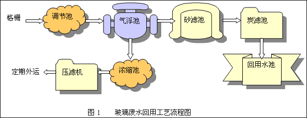 三、典型工藝玻璃廢水回用工藝流程如下圖所示(本工藝僅作為參考,具體工藝結合具體情況而定):