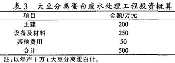 4.1大豆分離蛋白廢水處理工程總投資及構(gòu)成大豆分離蛋白廢水處理工程總投資及構(gòu)成見表3。