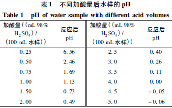 同時,其COD 呈先增后降的趨勢,在加酸量為3.0 mL H2SO4/100 mL 乳化液時COD 最高,造成這一情況的原因類似于加熱時間對破乳效果的影響,加酸量的增加使得反應產物溶于水中的COD 增多,但由于破乳過程總體向著油水徹底分離的過程進行,因此下層水樣中COD 最終表現出下降趨勢。因此,認為加酸量在4.0~5.0 mL H2SO4/100 mL 乳化液時,具有最好的破乳效果,但是考慮到加酸量的增多使得反應后溶液的pH 過低(如表1 所示),會造成后續中和所投加的中和劑藥劑用量增大,以及后續的厭氧處理SO42-濃度過高的問題,因此將加酸量控制在1.0 mL 98% H2SO4/100 mL 乳化液,同樣可以獲得較為理想的破乳效果。