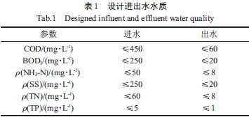 本工程設(shè)計水量為65 m3/d,24 h 運行。出水水質(zhì)執(zhí)行城鎮(zhèn)生活污水處理廠污染物排放標準(GB 18918-2002)一級B 標準。進出水水質(zhì)如表1 所示。