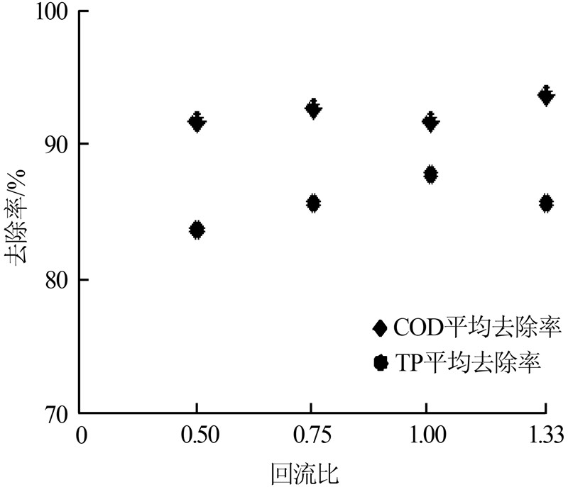 由圖 6可知,污泥回流比對COD的平均去除率影響較小,COD平均去除率基本在90%~94%之間。污泥回流比對TP的去除有一定的影響,回流污泥先進入厭氧反應器釋磷,然后進入改良氧化溝的好氧區超量吸磷。當污泥回流比為1時,除磷效果最佳。除磷和脫氮過程是2個相互矛盾的過程〔2015020910">10〕,污泥回流量小表示活性污泥中聚磷菌的數量少,此時的除磷效果沒有污泥回流量大時好;但污泥回流量過大,又會使較多的硝態氮進入厭氧反應器,反硝化細菌在與聚磷菌的競爭中占據優勢地位,使聚磷菌的生長受到抑制,影響了TP的去除。綜合考慮COD和TP的去除效果,最佳污泥回流比為1。具體參見http://m.bnynw.com更多相關技術文檔。