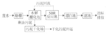 (2)水解酸化池。設水解酸化池1 座,鋼砼結構,尺寸為12 m×15 m×2.5 m,停留時間2 d,池中填充彈性填料,通過厭氧微生物降解高分子有機物,池底均布曝氣管,手工閥門控制曝氣時間,與SBR池共用鼓風機,防止污泥沉積,出水使用泥泵送至SBR 池。