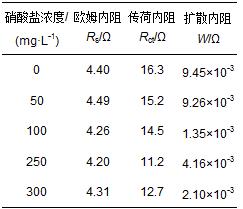 表 3 不同陽極初始硝酸鹽濃度下MFC阻抗擬合數據