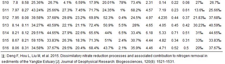 沉積物樣品采自長江口及其鄰近海域.根據其自然環境狀況差異性,選取所示16個采樣點(如圖 1),其中S1、S3、S4、S5、S8位于河口區,其余點S2、S6、S7、S9、S10、S11、S12、S13、S14、S15和S16選于近海區,采樣點經緯度采用GPS確定.于2013年7月和2014年1月分別在各站點處利用箱式采泥器采集,然后用有機玻璃柱采集表層(0~5 cm)沉積物放入干凈的密封聚乙烯袋中,每個樣點均采集3個平行樣混合后作為該樣點的代表樣,于4 ℃冰箱保存帶回實驗室.沉積物樣品一部分立即測定堿性磷酸酶活性,另一部分將其冷凍干燥后研磨過100目篩,裝于密封袋中用于磷形態與理化性質的測定.采用氣密型水體采樣器采集沉積物上覆水,用于水體環境指標分析.