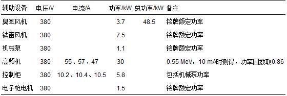 表2 加速器在0.55 MeV、10 mA工作狀態(tài)下耗電明細