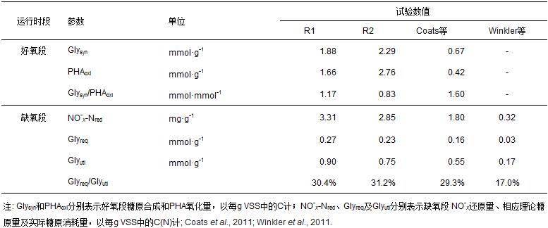 表1 傳統厭氧段與靜置段的化學計量數及PHA組分百分比的比較(以乙酸鈉為碳源)