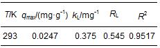 式中,kL為Langmuir常數,qmax為單層飽和吸附容量(mg · g-1).