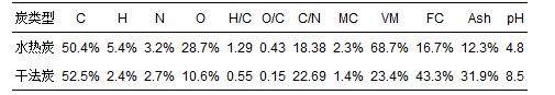 表5 銅藻基水熱炭和干法炭的pH值及元素和工業分析