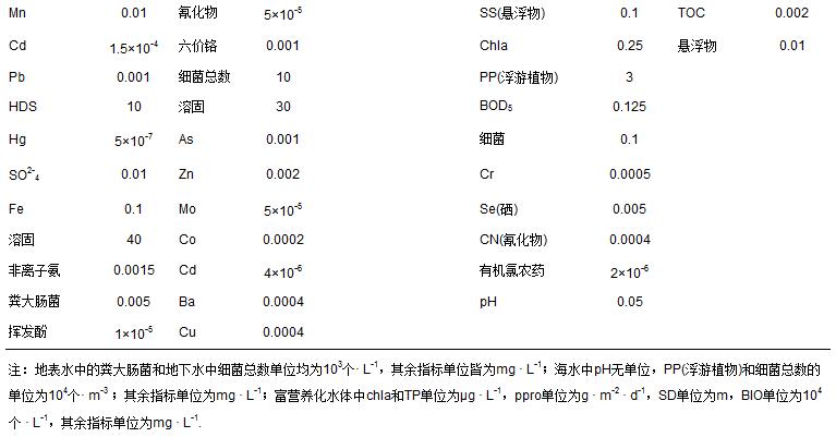表 1 4類水體95項指標的參照值