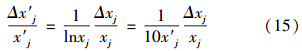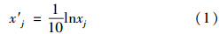 式中,x′j 為指標j的規范值;xj為指標j的變換值,對4類水體和空氣指標j設定的變換式分別如式(2)~式(7)所示.