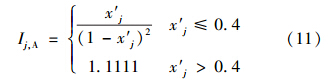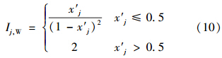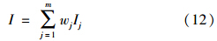 式中,Ij為由式(10)或式(11)計算得到的指標j的引力指數值;wj為指標j的歸一化權值,即滿足∑ m j=1 wj=1,它可以視實際問題需要,采用某種方法確定.一般情況下,只要各指標的規范值x′j差異不大,可視各指標為等權即可;但若最大指標規范值x′j,max與最小指標規范值x′j,min差異較大,則可采用如式(13)所示的對各指標規范值x′j的線性加權計算權值.