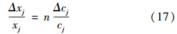 根據系統靈敏度定義,引力指數I對指標測值cj的靈敏度Sc如式(19)所示.