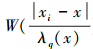假設一個正整數q≤n(n為時間序列長度),令距離x點最近的q個點被選擇參與回歸,λq(x)為距離x點第q遠的點與x點處的距離, xi-x 為xi點與x點之間的距離,則x的臨近值權重公式為vi(x)=W(