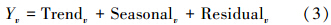 STL是一種用LOESS作為平滑器,將時間序列分解為低頻率的趨勢項、高頻率的周期項及不規則變化的殘差項的非參數統計方法:
