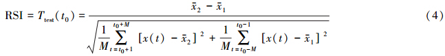 RSI是一種滑動T檢驗(running T-test)方法,通過計算某一點的RSI值,來判斷該點前后M個值組成的樣本是否有顯著性的變化(Xu et al., 2013).t0時刻的RSI值公式為: