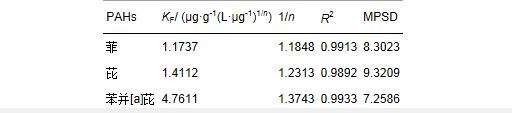 表 3菲、芘和苯并[a]芘在焦化污泥上吸附時的Freundlich吸附等溫式參數