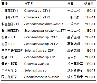 備選藻種共計11株,包括8株實驗室分離藻種和3株購買藻種.
