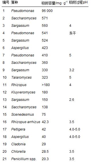 表 2 藻種對U(Ⅵ)的吸附容量對比 [25]