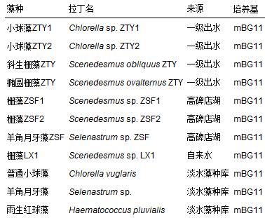 備選藻種共計11株,包括8株實驗室分離藻種和3株購買藻種.