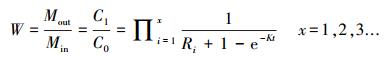 折減系數W的計算公式如式(5)所示, 而污染物的阻滯系數R=1+ρKd/n, 因此, 式(5)可以化簡得到式(6).