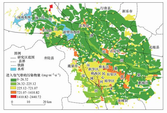 石家莊地處河北省中南部, 位于北緯37°26′~38°46′, 東經113°31′~115°29′之間.本次研究區主要包括石家莊市區、鹿泉市、正定縣、靈壽縣與平山縣區域, 研究區位置與范圍如圖 2所示.區內最大河流為滹沱河, 所形成的河床及河漫灘一般寬度為2000~4000 m.由于上游修建了黃壁莊水庫, 河水受到人工控制, 所以通常滹沱河河道內只有汛期才有水通過.研究區內有黃壁莊水庫與崗南水庫兩大水庫, 崗南水庫是河北省管轄的庫容最大的水庫, 崗南水庫與黃壁莊水庫主要作用以防洪為主, 并結合發電、農業灌溉、工業供水和省會石家莊城市生活、環境供水等為一體, 為石家莊最重要的水源地.