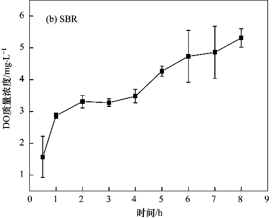 反應器內DO由JPB-607A溶解氧儀測定,在單周期運行開始前,將DO測定儀探頭分別埋入各個監測點,讀取同一時間不同監測點的DO質量濃度.