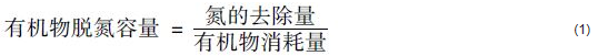 上式中,有機物脫氮容量為反應器中消耗單位量有機物能夠去除氮素的量(N/COD),mg·mg-1; 氮的去除量為TN去除量,mg; 有機物消耗量為COD表示的有機物去除量,mg.