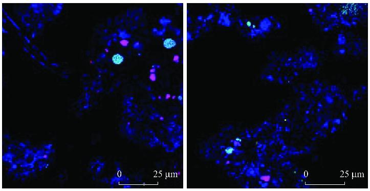 樣品雜交后用封片劑封片,并在共聚焦顯微鏡(Leica TCS SP8 X,Leica Microsystems,Mannheim,Germany)下觀察. 每個樣品隨機取10~20個視野,最終結果采用Leica Microsystems LAS AF-TCS SP8軟件分析.