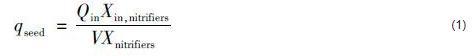 式中,qseed為硝化菌連續接種強度,g·(g·d)-1; Qin為城市污水處理廠的日進水量,L·d-1; Xin,nitrifiers為城市污水中硝化菌濃度,mg·L-1; V為城市污水處理廠生物反應池的容積,L; Xnitrifiers為活性污泥中硝化菌濃度,mg·L-1.