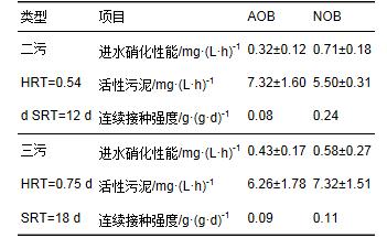 | 表 2 二污、 三污進水及活性污泥的硝化性能及連續接種強度 |