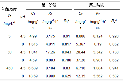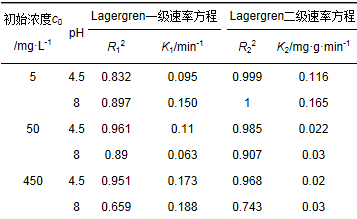 表 1 Cr (Ⅵ)吸附動力學準一級和準二級模型參數擬合結果