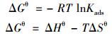 通過考察15℃、25℃時溫度對施氏礦物吸附Cr (Ⅵ)的吸附等溫線(見圖 6),結果表明實驗溫度范圍內,吸附量隨溫度升高而升高,表明施氏礦物吸附Cr (Ⅵ)是一個吸熱過程.依據吉布斯方程計算溫度對吸附平衡常數的影響: