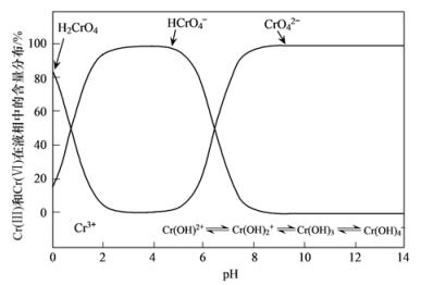 圖 10 不同pH值條件下Cr (Ⅵ)的存在形式及分布