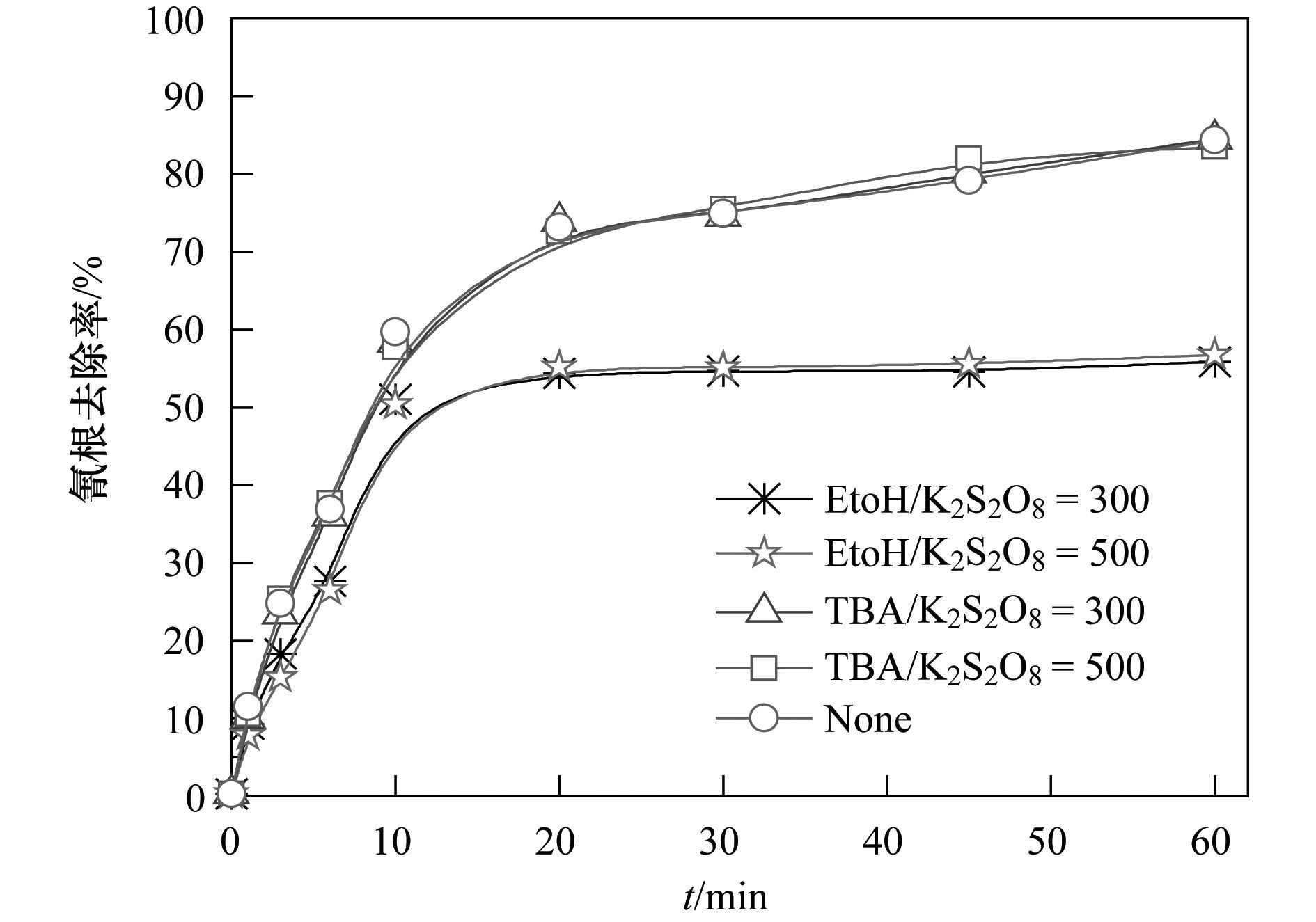 據(jù)知,SO4·-和HO·一般被認(rèn)為是活化過硫酸鹽過程中的主要氧化物種,并且在中性或堿性條件下,SO4·-可能會轉(zhuǎn)變?yōu)镠O·[20, 27],反應(yīng)如方程式(2) 所示: