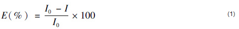 發(fā)光菌毒性測試采用國際標準ISO 11348急性毒性15 min暴露方法,實驗菌種為費氏弧菌(購自中國工業(yè)微生物菌種保藏管理中心).實驗前將保存的菌種轉(zhuǎn)接于50 mL的液體培養(yǎng)基中,在20℃,180 r·min-1條件下進行培養(yǎng),當其處于對數(shù)生長后期時,用2% NaCl稀釋菌液使其相對發(fā)光值為300~400萬RLU;將100 μL濃縮的樣品、陽性對照(苯酚) 以及100 μL菌液加入96孔板,在檢測儀上高速振蕩30 s,搖勻,暴露15 min后測定發(fā)光值.每個樣品設(shè)置3個平行,并設(shè)置板間平行.樣品的RLU平均值記為I,空白對照的RLU平均值記為I0.根據(jù)公式(1) 計算不同濃縮倍數(shù)的污水的發(fā)光抑制率E.