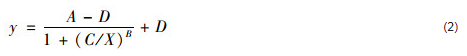 式中,y為β-半乳糖苷酶活性;X為水樣濃縮倍數(shù);A為最大β-半乳糖苷酶活性;B為回歸曲線(xiàn)中點(diǎn)的斜率;C為半數(shù)最大β-半乳糖苷酶活性時(shí)水樣的濃縮倍數(shù) (EC50);D為本底β-半乳糖苷酶活性.