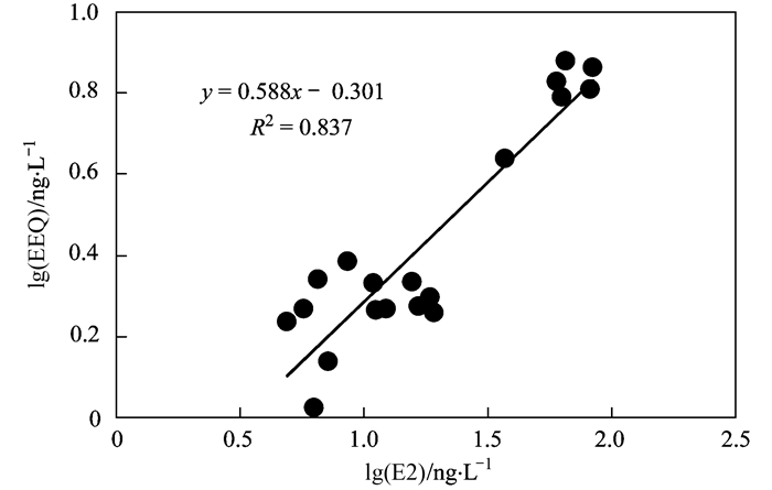 圖 7 樣品的EEQ與E2的濃度水平的相關(guān)關(guān)系