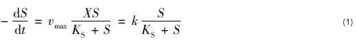 應用Monod方程構建人工濕地內微生物的脫氮反應動力學關系式如式 (1) 所示.