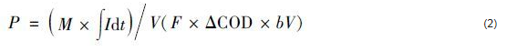 式中,M為基質摩爾質量 (g·mol-1),F是法拉第常數 (96 485 C·mol-1);b是1 mol基質充分氧化后轉移的電子個數;V是反應器溶液體積 (m3),ΔCOD為電池進出水COD的差值 (mg·L-1).