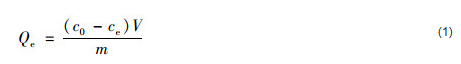水合氧化鋯對水中磷酸鹽的單位吸附量 (Qe,mg ·g-1) 采用公式 (1) 進行計算: