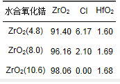 表 1 不同沉淀pH值條件下制備的水合氧化鋯的化學成分/%