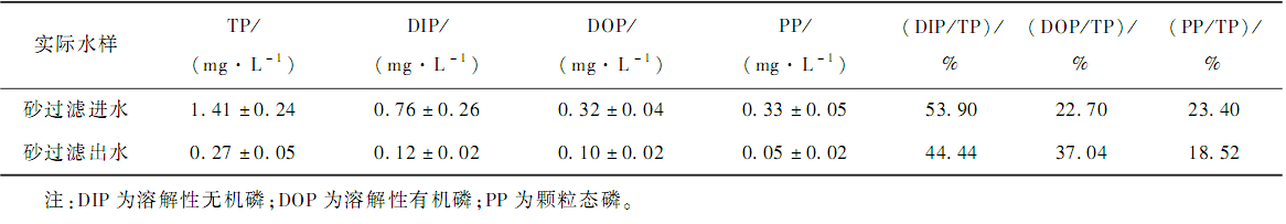 表 2 砂過濾進出水 9—12 月份不同形態(tài)磷平均含量及占總磷比例