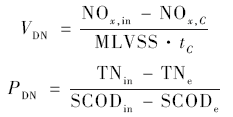 式中:SS 為混合碳源種的快速降解成分;(ΔNOx -N)tC 為tC 時刻NOx -N 的減少量;PDN 代表系統的反硝化能力。