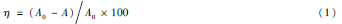 式中:η 為去除率;A0 為反應前的吸光度值;A 為反應后的吸光度值。